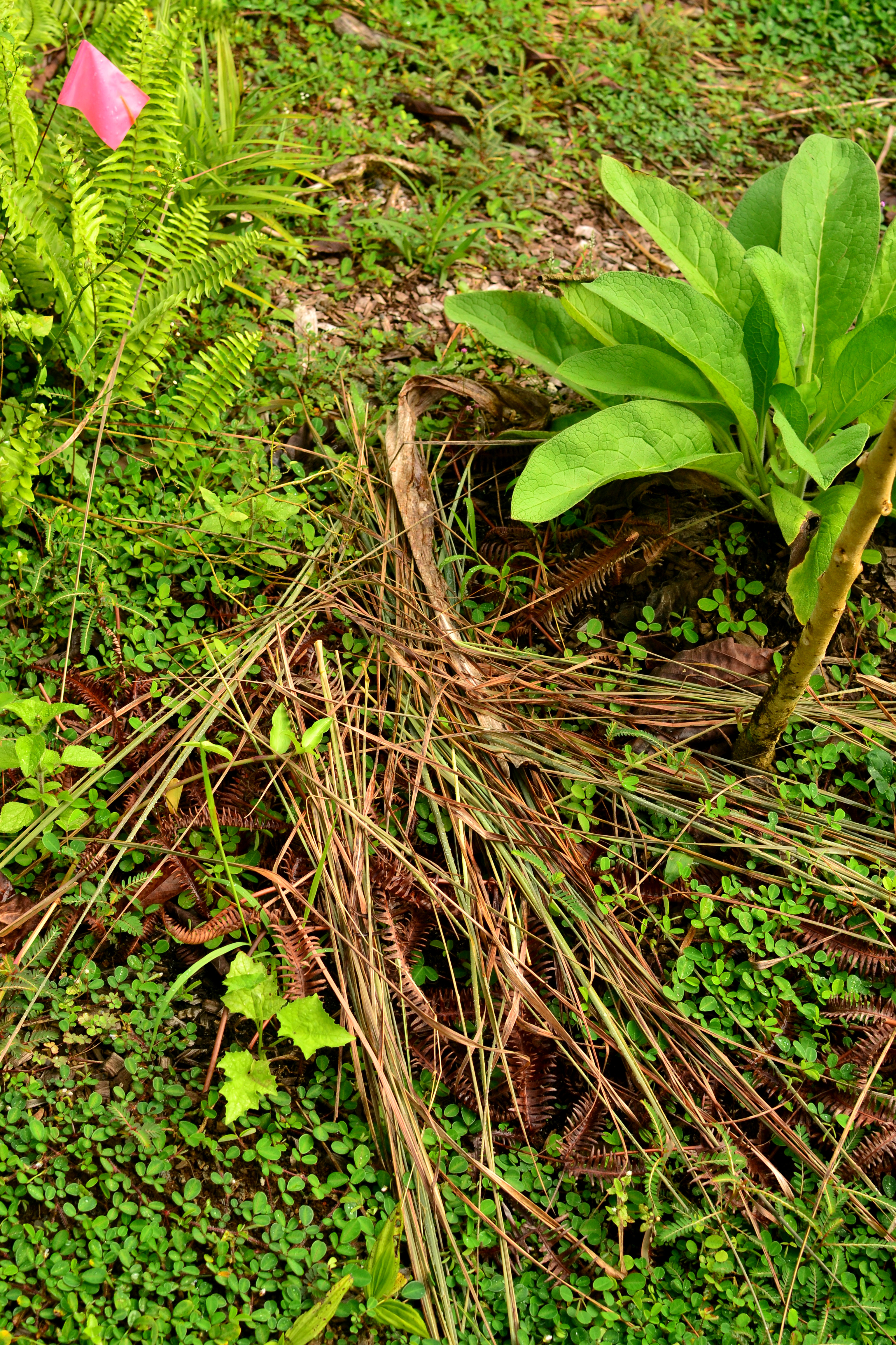 Now, let’s translate this into building soil for our own benefits. First off, all plant matter is a resource. Remember that. That is the MOST IMPORTANT factor to think of in your garden. I never take materials to green waste (unless they are diseased). All those pesky weeds, albizia, waiwi, arthrostemma, and everything else are valuable resources ready to take part in soil building.